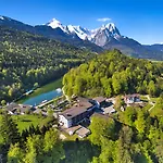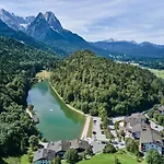 Το Riessersee Hotel Γκάρμις-Παρτενκίρχεν 4 αστέρων απέχει 130 χιλιόμετρα από το αεροδρόμιο Μέμινγκεν Αλγκάου και προσφέρει θερμαινόμενη πισίνα καθώς και κέντρο φίτνες.